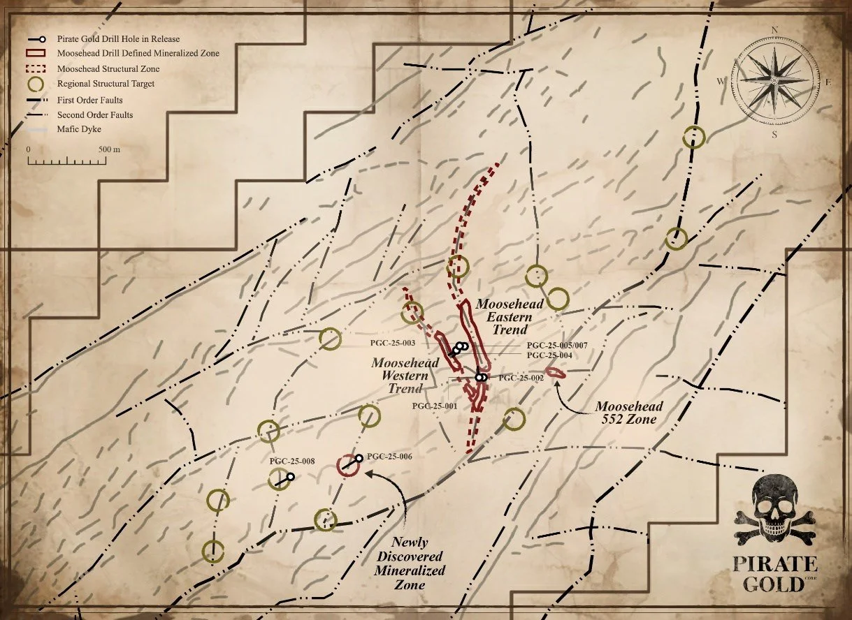 "While much of the drilling to date has focused on expanding the known Moosehead trends, we believe the broader opportunity lies in testing near-surface geophysical targets across the property. We're truly excited by the success in drill hole PGC-25-006 and plan to not only further define this new zone but continue the hunt for additional new discoveries. With more than 50 kilometres of comparable geology and structural setting across Treasure Island North, we believe we are only beginning to unlock the district-scale potential of this system."