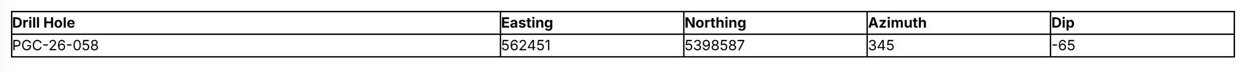 Table 1 - Drill Hole Information for PGC-25-001 through PCG-25-008